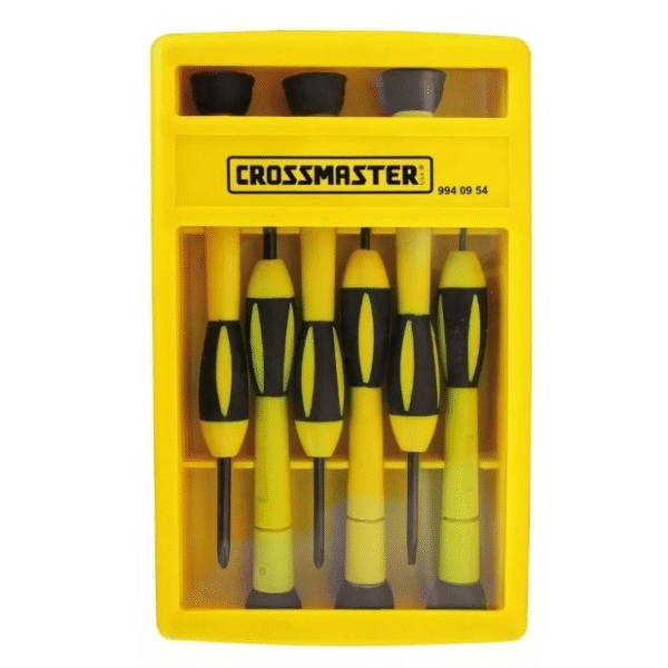 JGO DESTORNILLADOR P/ELECTRONICA – CROSSMASTER   SET DE 6 DESTORNILLADORES – Crossmaster Art. 9940954. Características • Punta Magnetizada • Especial